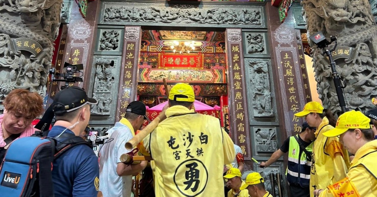 媽祖被請下鑾轎。(圖/白沙屯拱天宮提供)