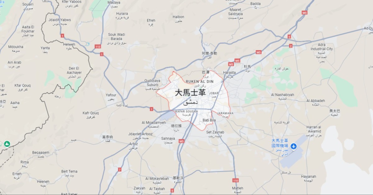 以色列軍隊16日轟炸敘利亞首都大馬士革軍隊總部的入口大門。(圖/翻攝自Google Maps)