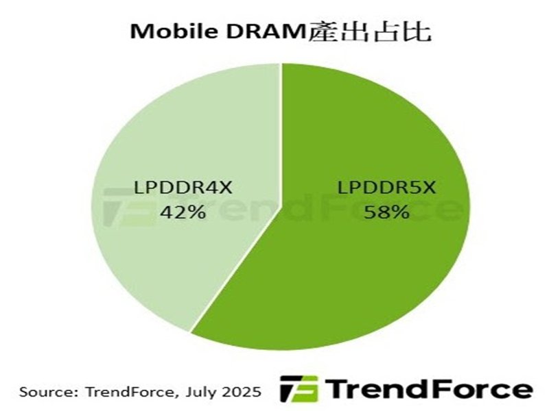 TrendForce表示,若以2025年Mobile DRAM的總產出位元來看,LPDDR4X仍有約42%,其餘為LPDDR5X。然近期因手機市場對LPDDR4X需求激增,加上預計2026年位元產出將再較今年年減百分比達雙位數,加劇供需失衡,導致價格持續上揚,連帶第三季與LPDDR5X的價差也快速收斂,在未來幾個季度甚至出現價格倒掛的情況。2026年隨著LPDDR5X供給逐步充裕,合約價可望優於舊世代產品,成為帶動終端客戶轉向LPDDR5X的另一股龐大驅動力,透過加速驗證LPDDR5X,或是進行產業升級等來減少對LPDDR4X的依賴。