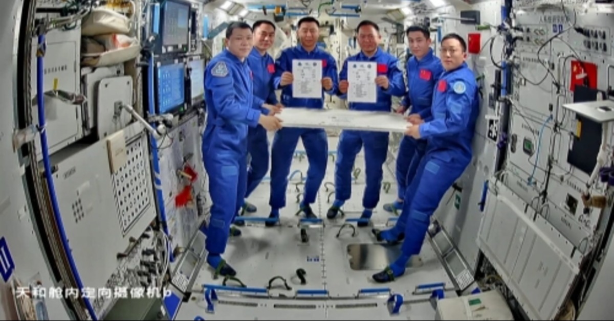 6名太空人完成交接儀式。(圖/翻攝自中國載人航天工程辦公室)
