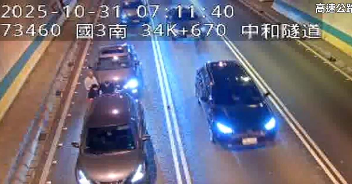 國道3號南向34.6km中和隧道今(31日)上午7點08分發生2部小客車追撞車禍,高速公路局北區交控中心已及時排除,但還是造成現場回堵1公里左右,路段車速大約只有36公里。