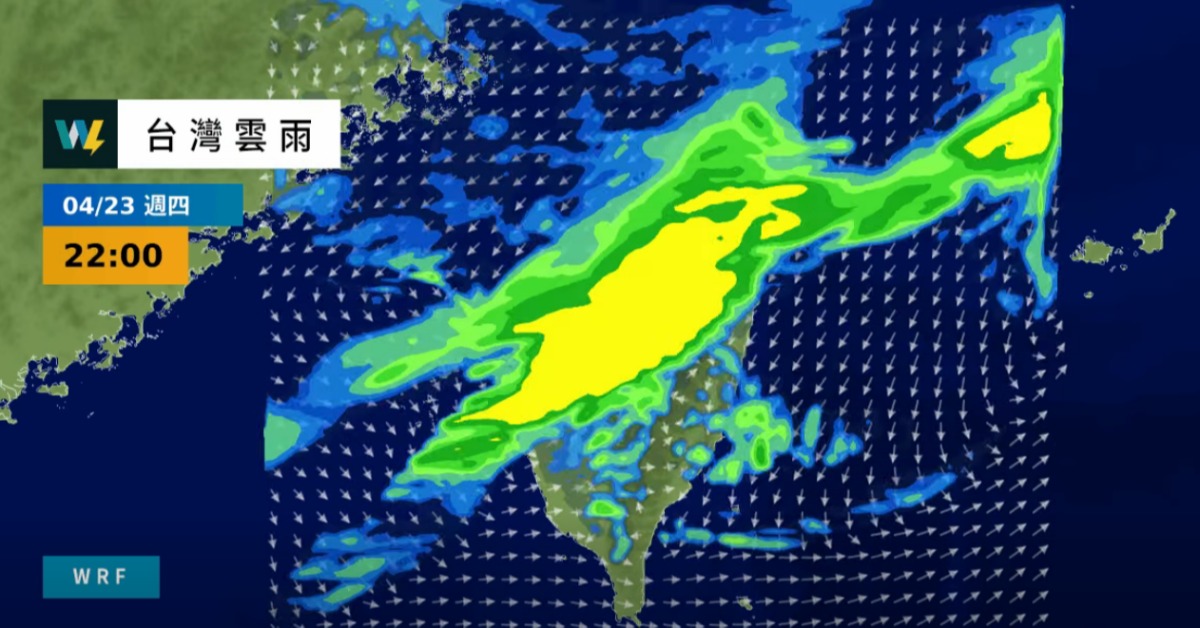 週四起鋒面通過,民眾須留意雷雨。(圖/翻攝自臉書粉專「天氣風險 WeatherRisk」)