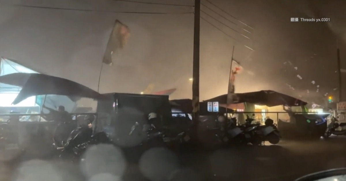中央氣象署昨(26)日晚間針對台中市發布國家級警報與豪雨特報,民眾驚呼「彷彿颱風來襲」。(圖/Threads @yx.0301 授權提供)