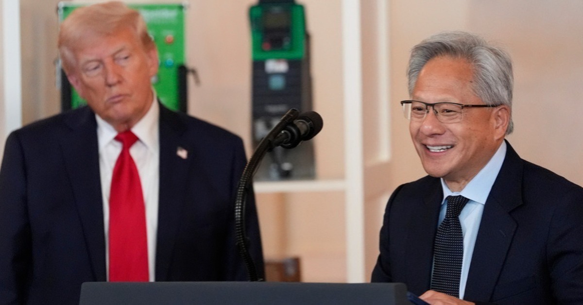 美國總統川普:「黃仁勳,我不覺得你能和你的台灣朋友,一起開大型工廠,我們拿下那裡40%或50%的晶片產業...。」