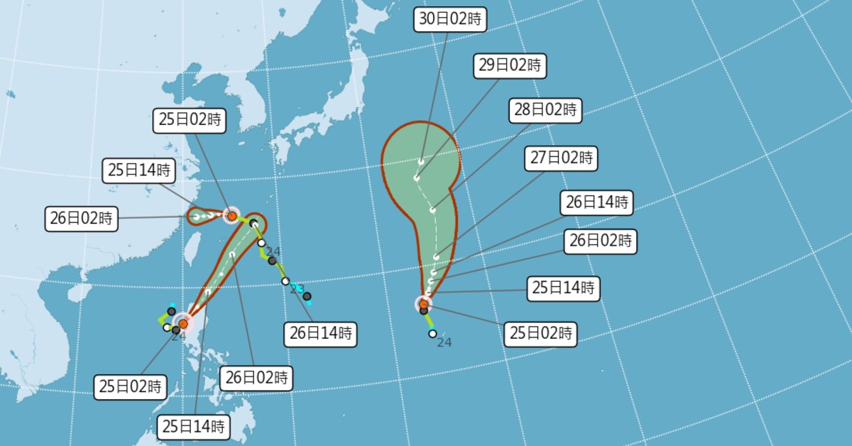 台灣周邊目前同時出現三個颱風,氣象社群平台「台灣颱風論壇|天氣特急」提醒,雖然三颱並存,但無一將直接登陸台灣,對台的影響主要仍為范斯高颱風的外圍環流所帶來的降雨。
