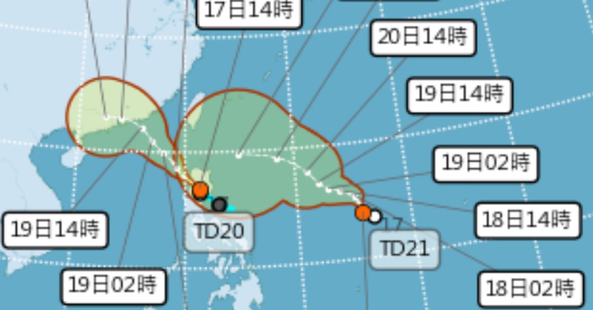 天氣職人吳聖宇在臉書發文,菲律賓東方海面的熱帶性低氣壓TD-20,預計在通過呂宋島後,就會發展為今年第17號颱風米塔,雖然不會直接威脅台灣,但會「掠過家門」,受其外圍環流影響,週四自週六(9/18至9/20)台灣整體水氣將增多,尤其花東、恆春半島等地,有局部大雨甚至豪雨發生機會。