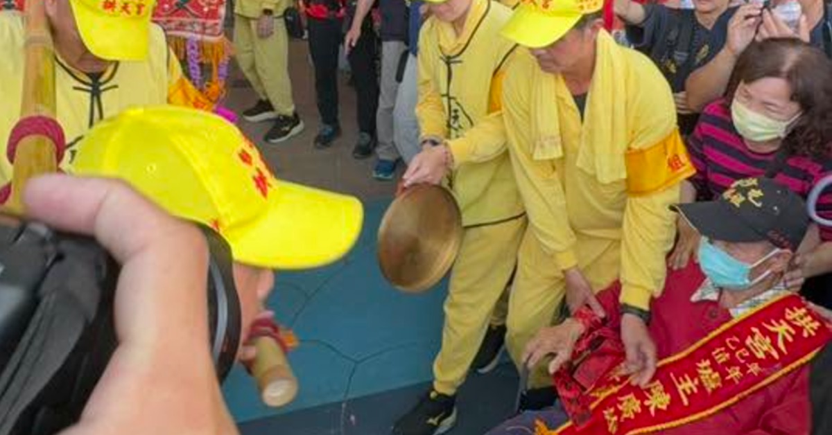 然而令人動容的是,媽祖回鑾途中行經台中梧棲時,鑾轎突然轉向醫院方向,彷彿特意前來探視這位未能隨行的爐主。當神轎抵達醫院門口時,現場早已聚集醫護人員與信眾迎接,而高齡86歲的陳廣雄也在家人陪同下坐著輪椅現身。隨後,他緩緩伸出雙手扶在轎桿上,神轎則輕柔地前後擺動,場面莊重卻又充滿情感,宛如無聲的交流與祝福。