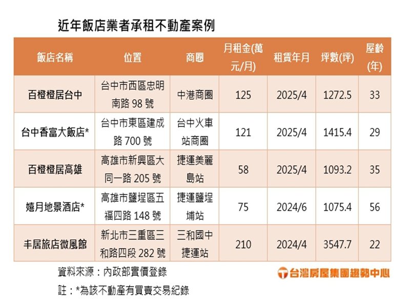 近年飯店業者承租不動產案例。(台灣房屋提供)