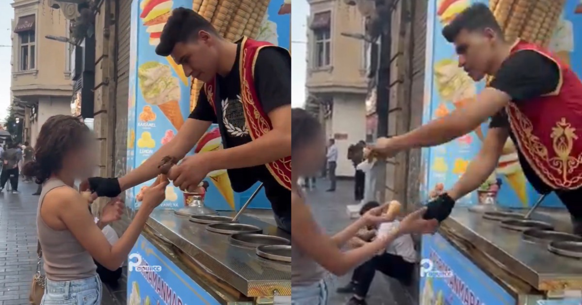 土耳其冰淇淋店員當眾性騷擾女顧客。(圖/翻攝自X@bosunatiklama)